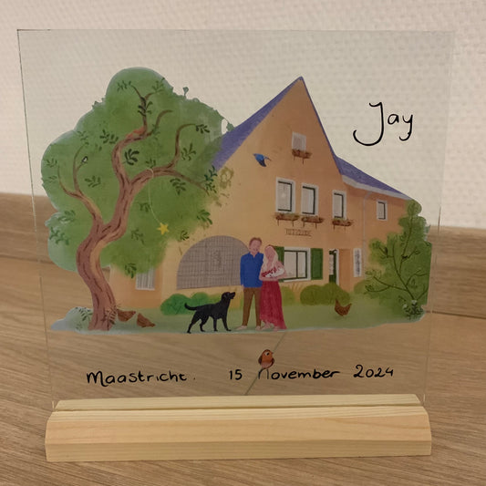 Glazen plaatje met thema van (geboorte)kaartje