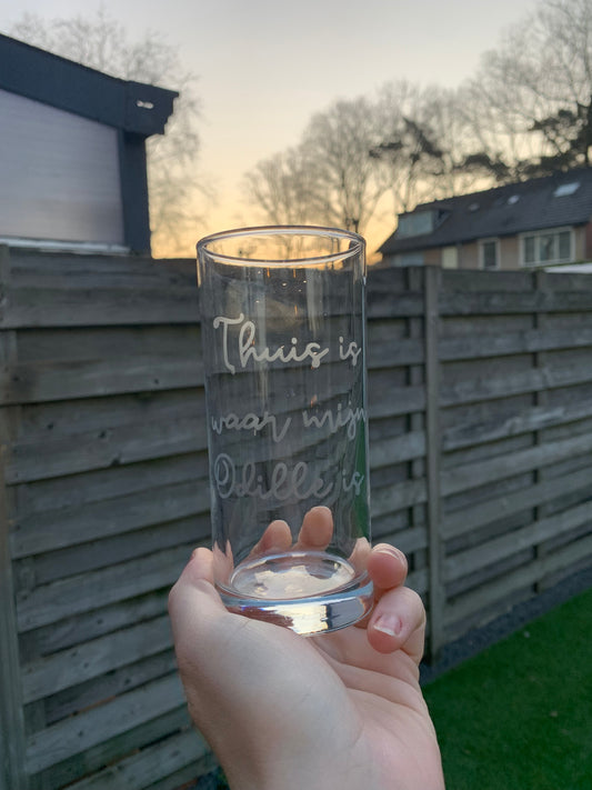 Geëtst waterglas met tekst